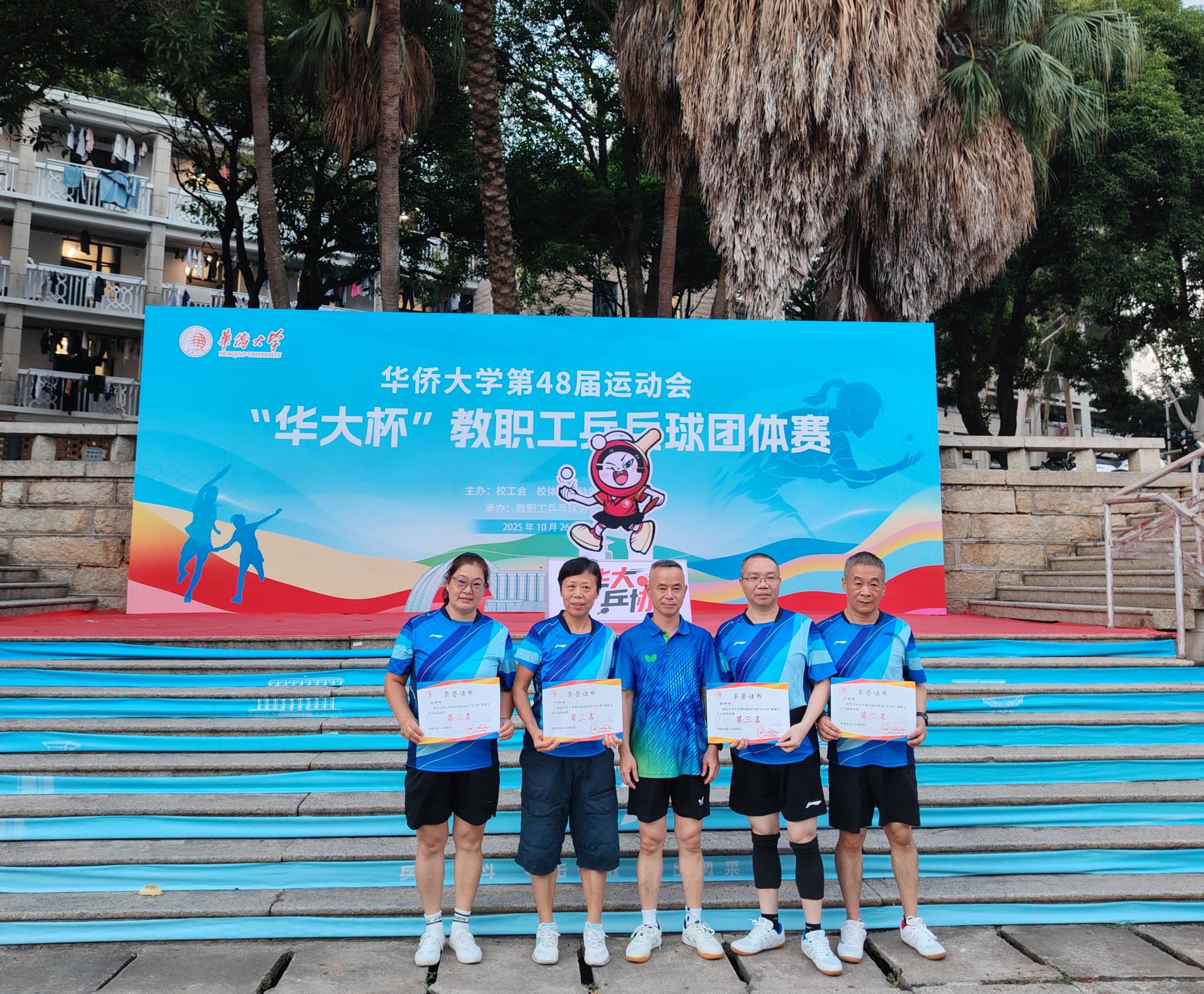 为庆祝yL23411永利集团建校65周年,积极倡导和弘扬教职工的拼搏精神与团队意识,营造积极向上的校园体育文化氛围,10月26日“华大杯”教职工乒乓球团体赛在泉州校区成功举办。在激烈的角逐中,外院代表队(领队:郑志民,队员:叶绿青、王燕梅、蔡和存、张宏文、王朝东)团结一心,奋勇拼搏,凭借出色的发挥和顽强的斗志,最终斩获泉州校区第三名!