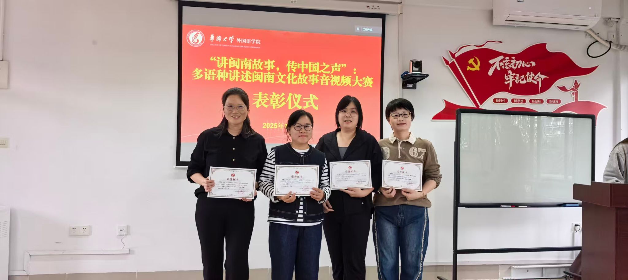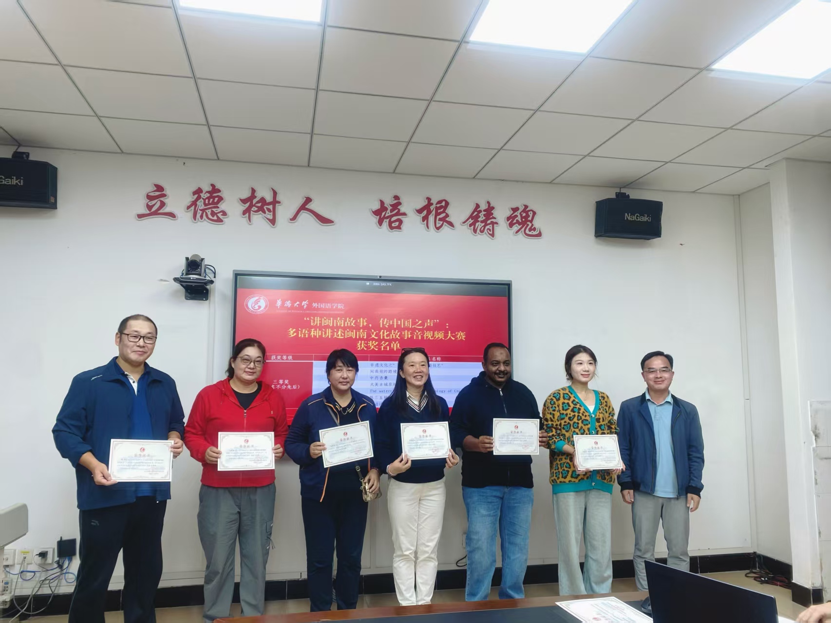 本次大赛得到了全院教师的积极响应,收到涵盖英语、日语、中文、阿拉伯语等多个语种的优秀作品。最终经专业匿名评审,评出一等奖、二等奖、三等奖共15名。《梧林古村:南洋风里的闽南非遗乡愁》(孙飞凤)、《Hui’an Women》(林璐)、《闽南文化故事之侨批》(许春翎)三部作品荣获一等奖。获奖作品主题丰富,制作精良,内容广泛触及世遗景点、非遗技艺、华侨文化、民间戏曲等多个领域,并有部分作品运用AI技术手段,为传统文化赋予了新颖的视觉表达。