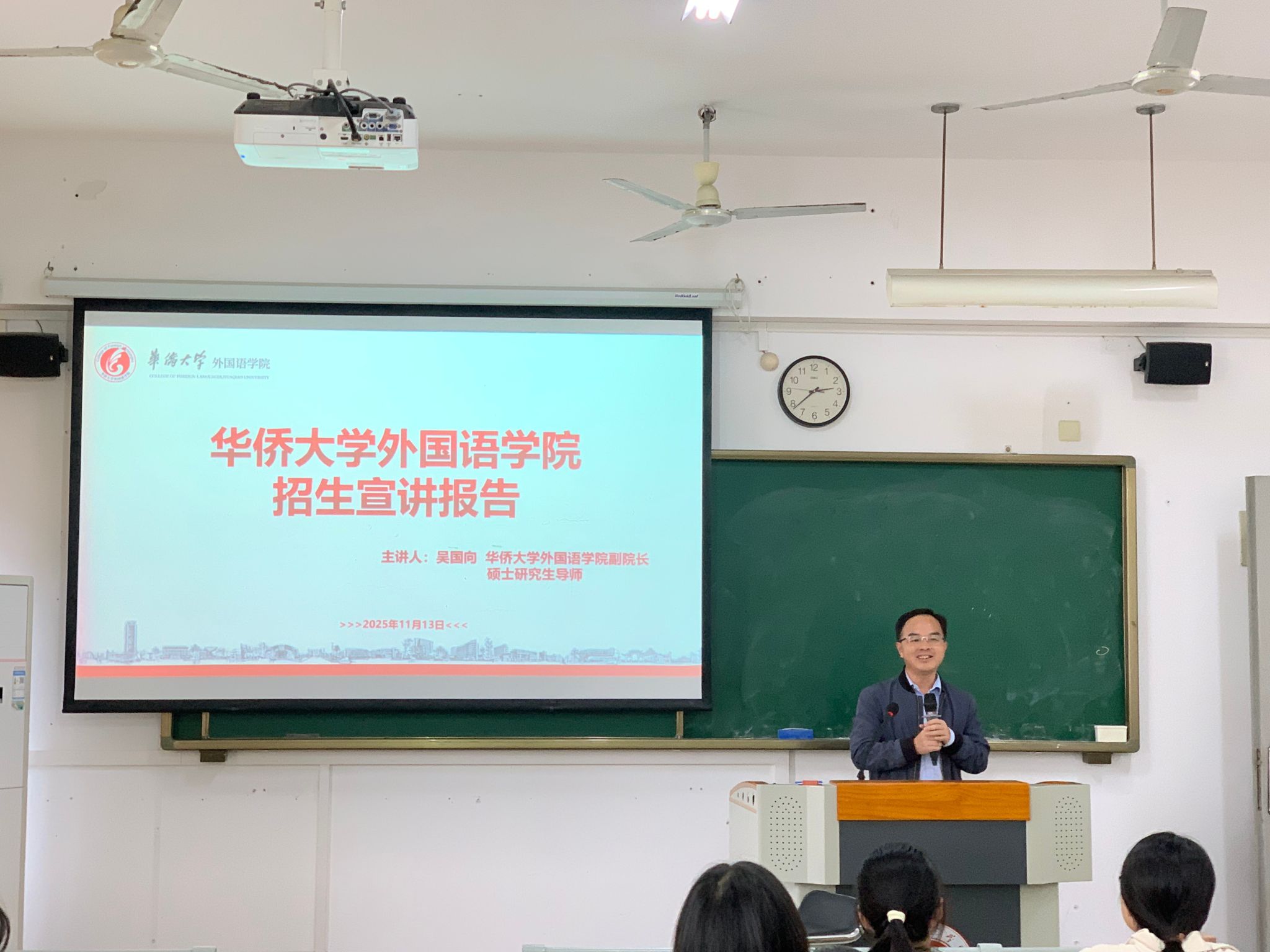 11月13日下午,永利23411集团赴泉州师范学院永利23411集团,开展研究生招生专场宣讲活动。此次宣讲,由吴国向副院长带队,邱琳老师和学生代表林静怡、温晓燕同学参加,以“院校专业解读 + 经验分享 + 互动答疑”的形式,为泉师外院学子带来全方位的报考指导。