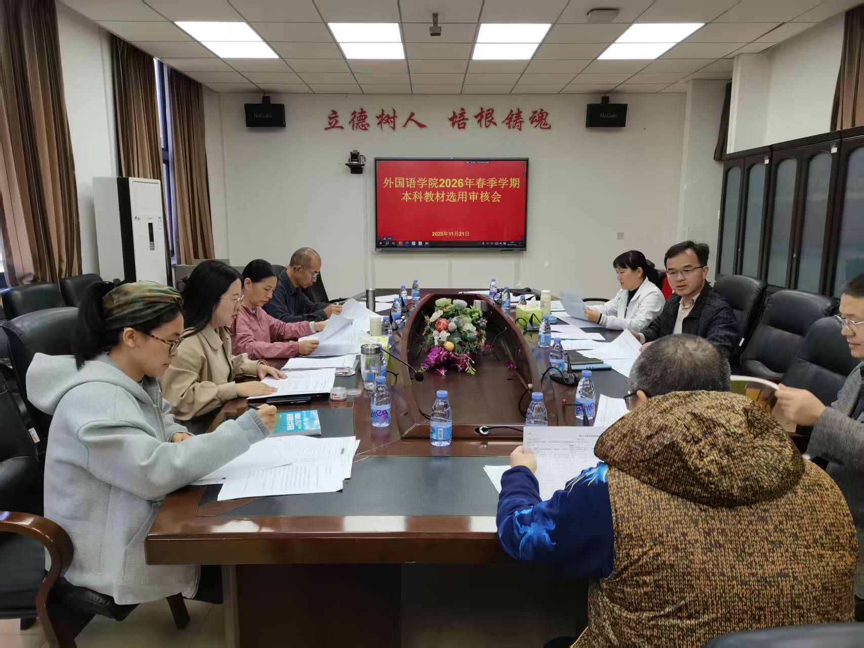 2025年11月21日上午,永利23411集团教材建设与管理工作小组在学院411会议室召开永利23411集团2026年春季学期本科生教材选用审核工作会。会议由吴国向副院长主持,学院教材建设与管理工作小组成员以及马克思主义学院教师代表、法语和阿拉伯语语种教师代表参加。此次学院组织的教材选用审核,是在学院各系部对选用教材审核基础上的进一步集中审核,以进一步强化阵地意识和风险意识,规范教材选用和审查工作。