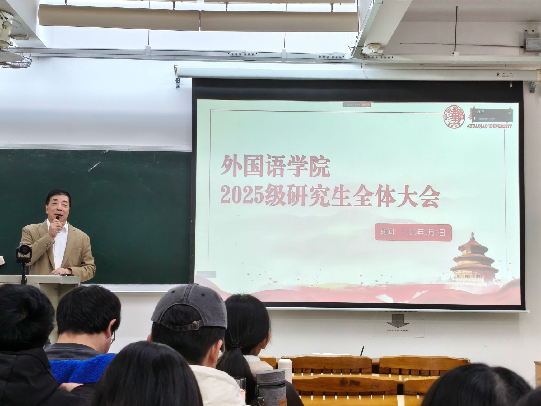 吴国向聚焦“用外语讲好中国故事”,倡导同学们实现从“学习者”到“研究者”“被动输入”到“主动输出”的转变,同时强调要筑牢意识形态安全防线、严守规则底线与学术道德。