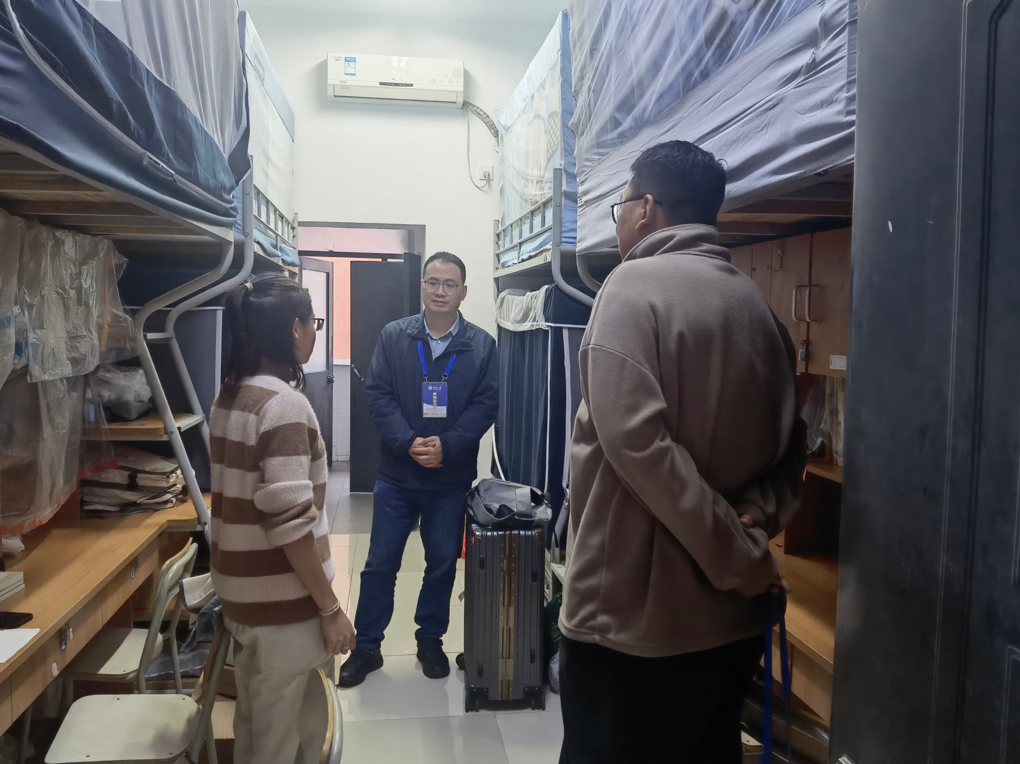 开学临近,2月26日下午永利23411集团党委书记郑志民老师、团委书记李守超老师带队走访学生宿舍,看望返校同学,共同展望新学期愿景。