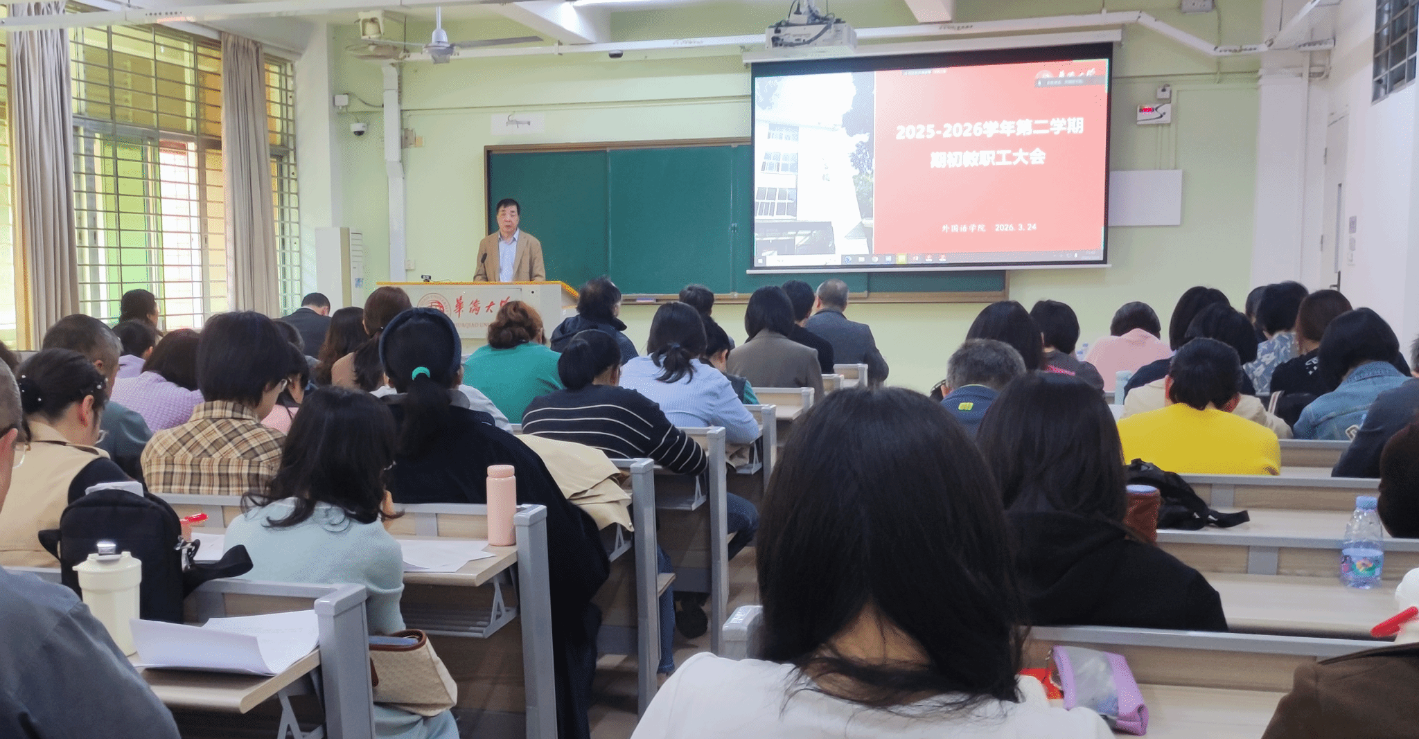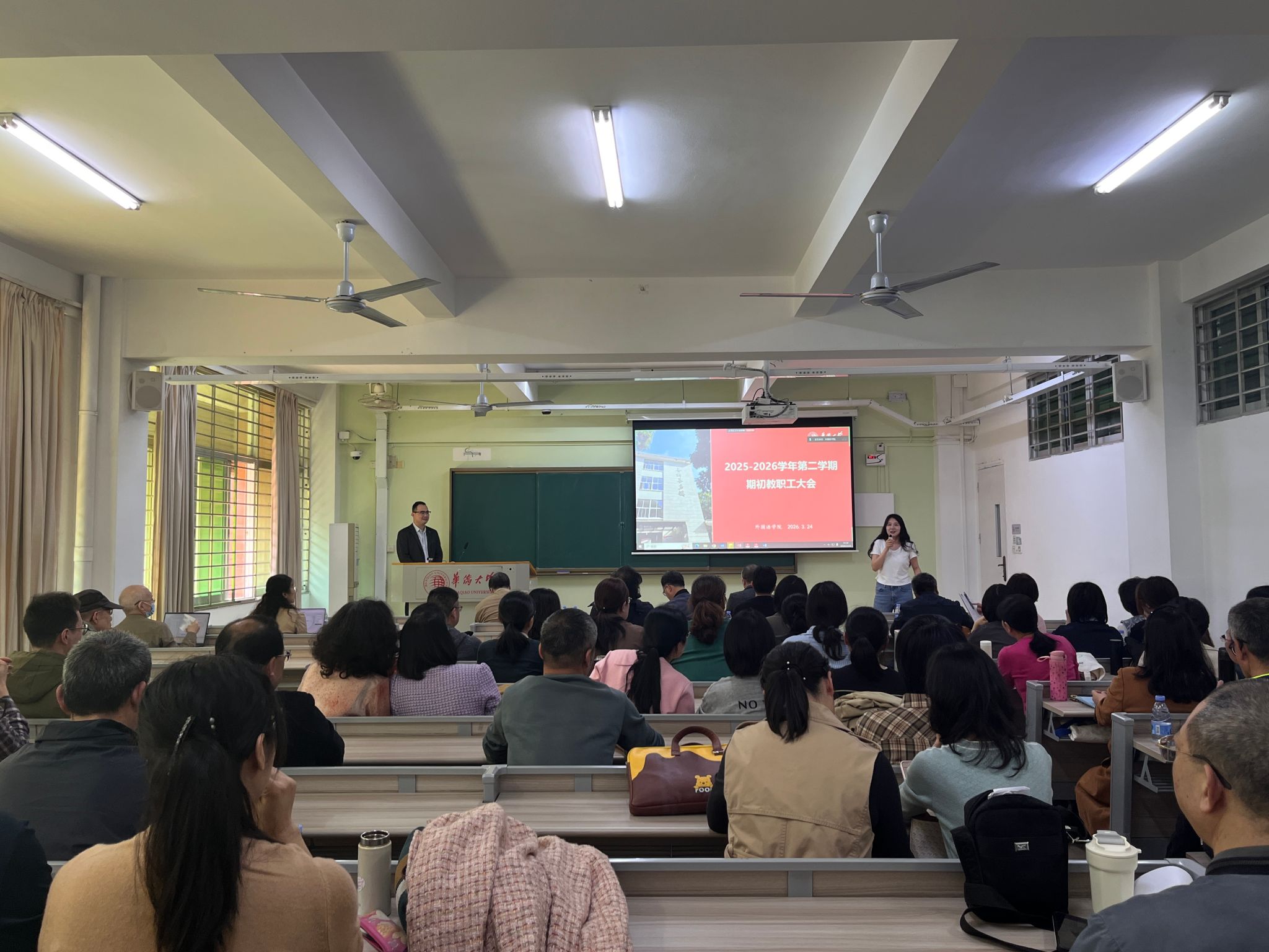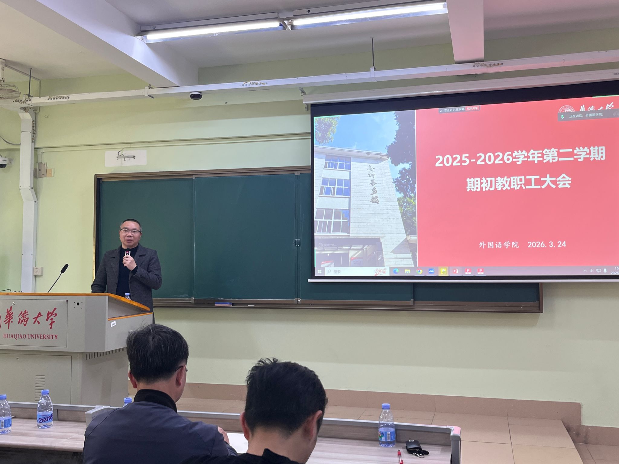 副院长蔡和存传达学校期初教学工作和实验室工作会议精神及要点,结合学院实际作新学期教学工作提醒,要求全体教师确保教学秩序平稳有序。