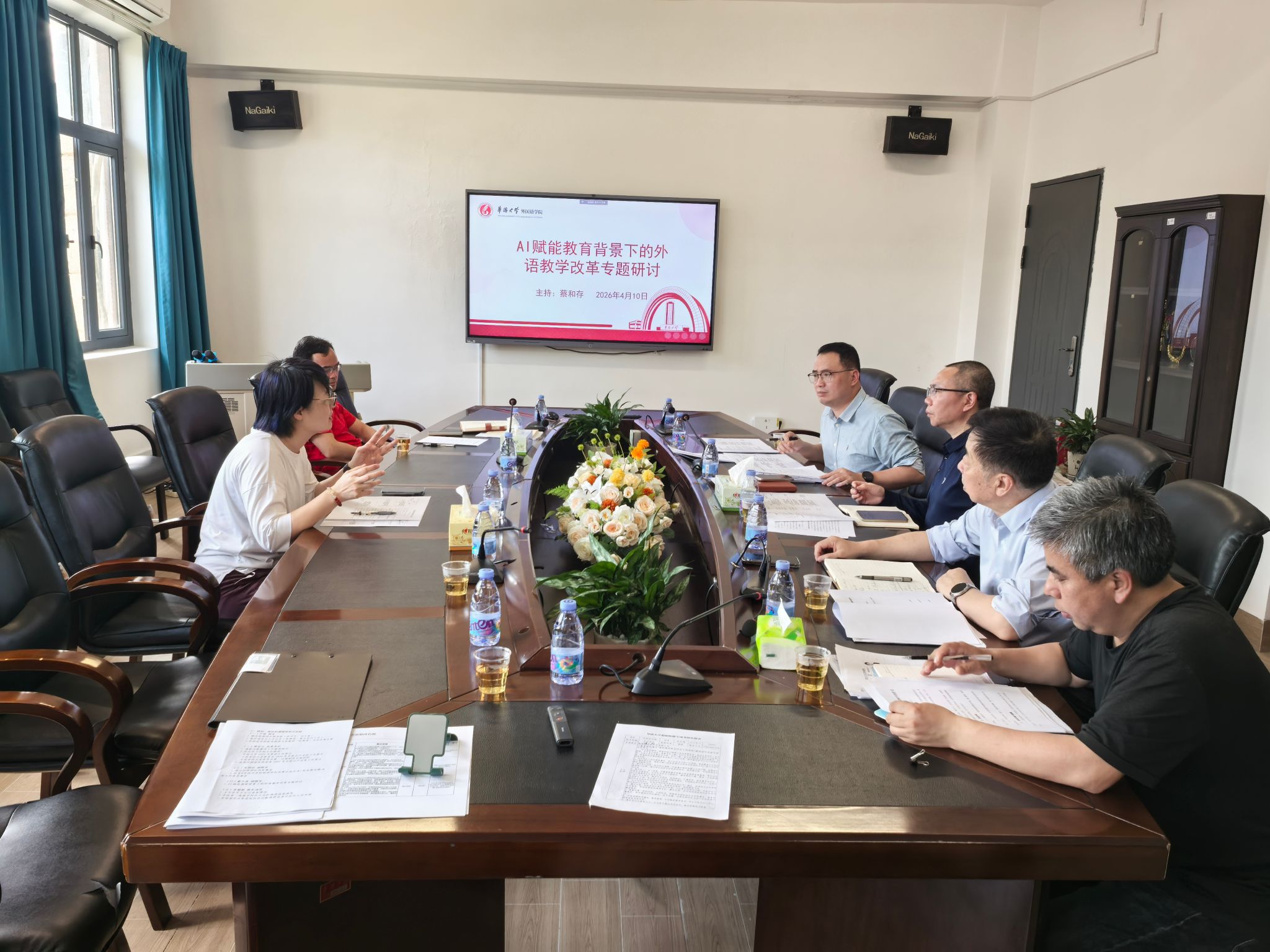 2026年4月10日下午,学院召开党政联席会议,专题研讨“AI赋能教育背景下的外语教学改革”。会议同时作为学院树立和践行正确政绩观学习教育的一次专题研讨,围绕如何以正确政绩观引领教学改革深入交流。学院全体党政领导班子参加会议,会议由副院长蔡和存主持。