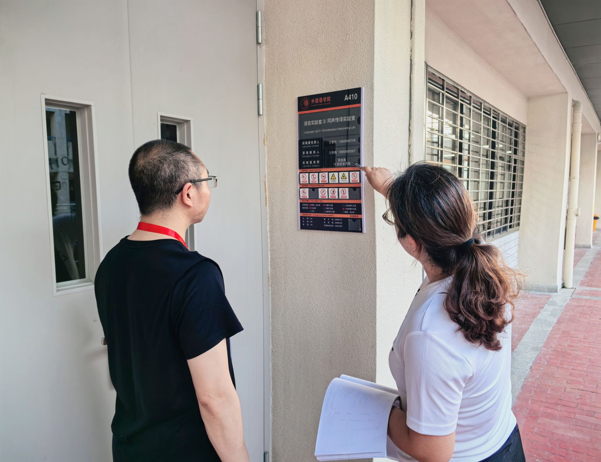 为落实学校五一节前实验室安全工作部署,防范安全事故,保障假期安全,4 月 28 日,学院实验室分管副院长蔡和存带领实验室安全工作小组,对语言实验教学中心开展节前安全专项检查。