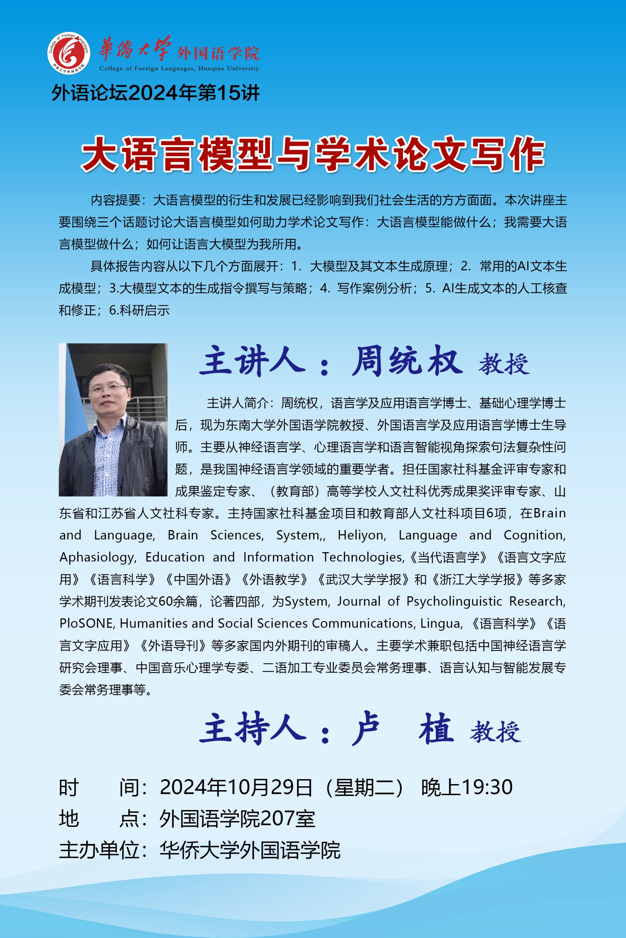 下一条:讲座信息:ChatGPT给翻译带来的隐忧与疏解(主讲人:张政 教授)
