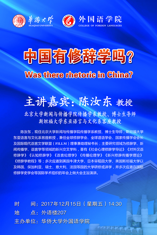 下一条:讲座信息:美国后现代文学研究、英美文学教学与研究