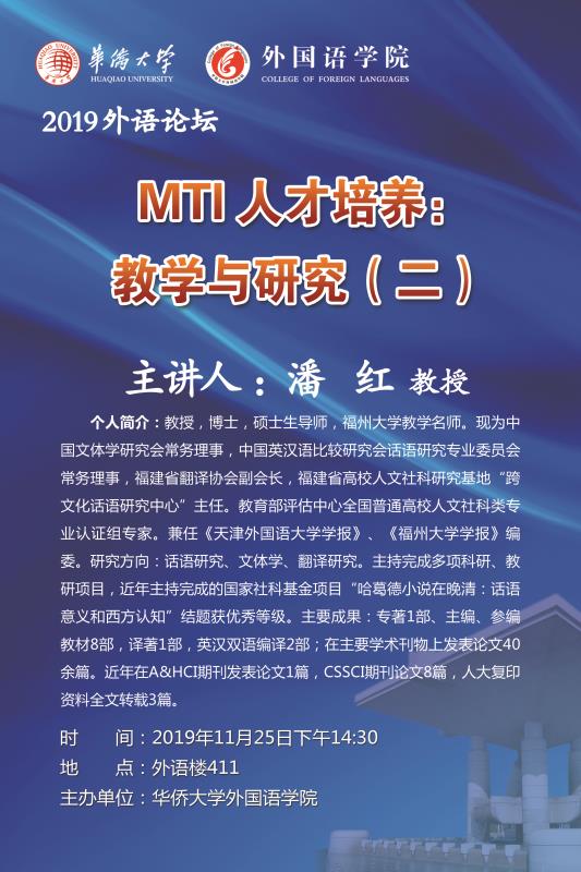 下一条:讲座信息:MTI人才培养:教学与研究(一)