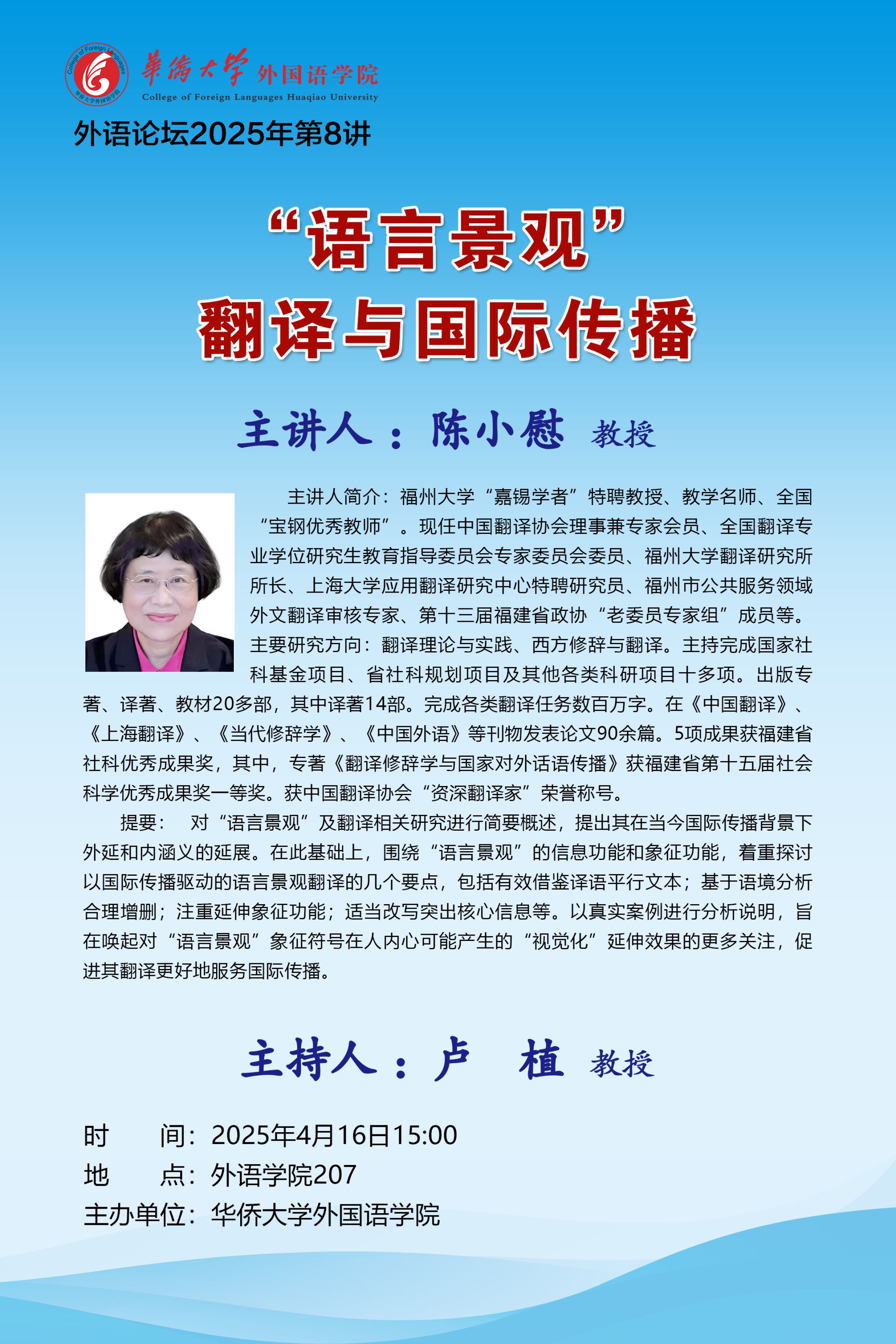 下一条:讲座信息:高校外语教师与语言学研究(主讲人:韩景泉 教授)