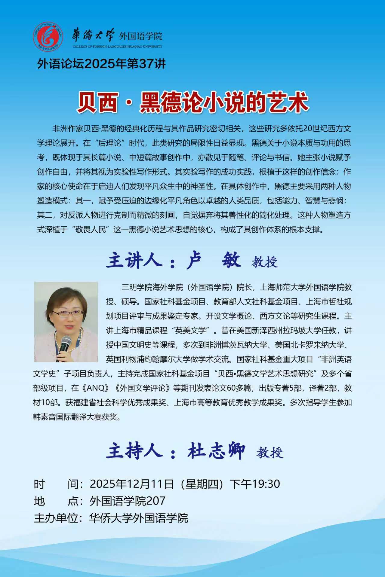 上一条:讲座信息:汉学家翻译实践与翻译信任——以金介甫为例(主讲人:徐敏慧 教授 )
