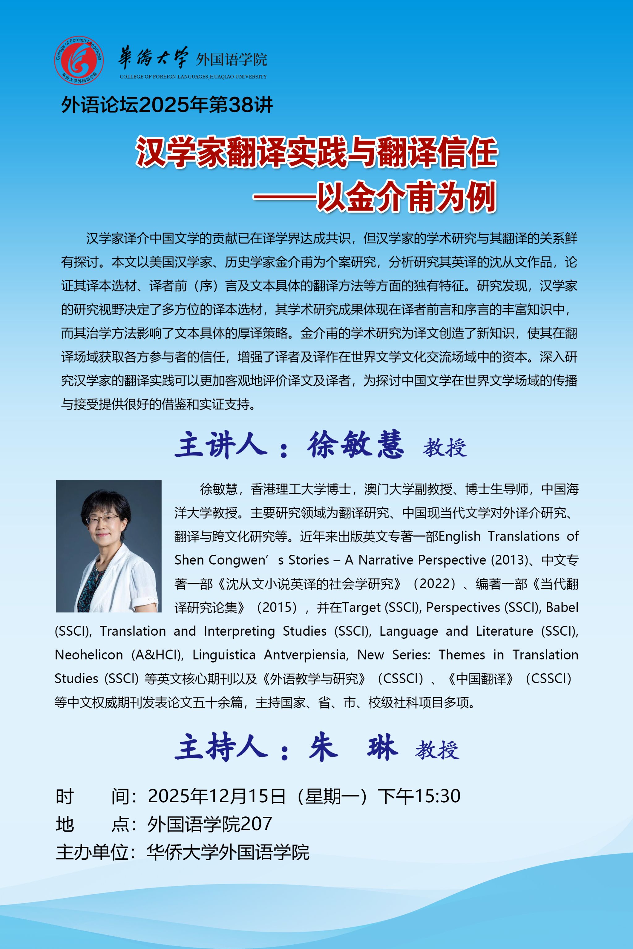 上一条:讲座信息:纯和非纯:研究生研究的求真和务实 Pure and Non-Pure: Truth-Seeking and Pragmatism in Graduates’ Research(主讲人:侯国金 教授)