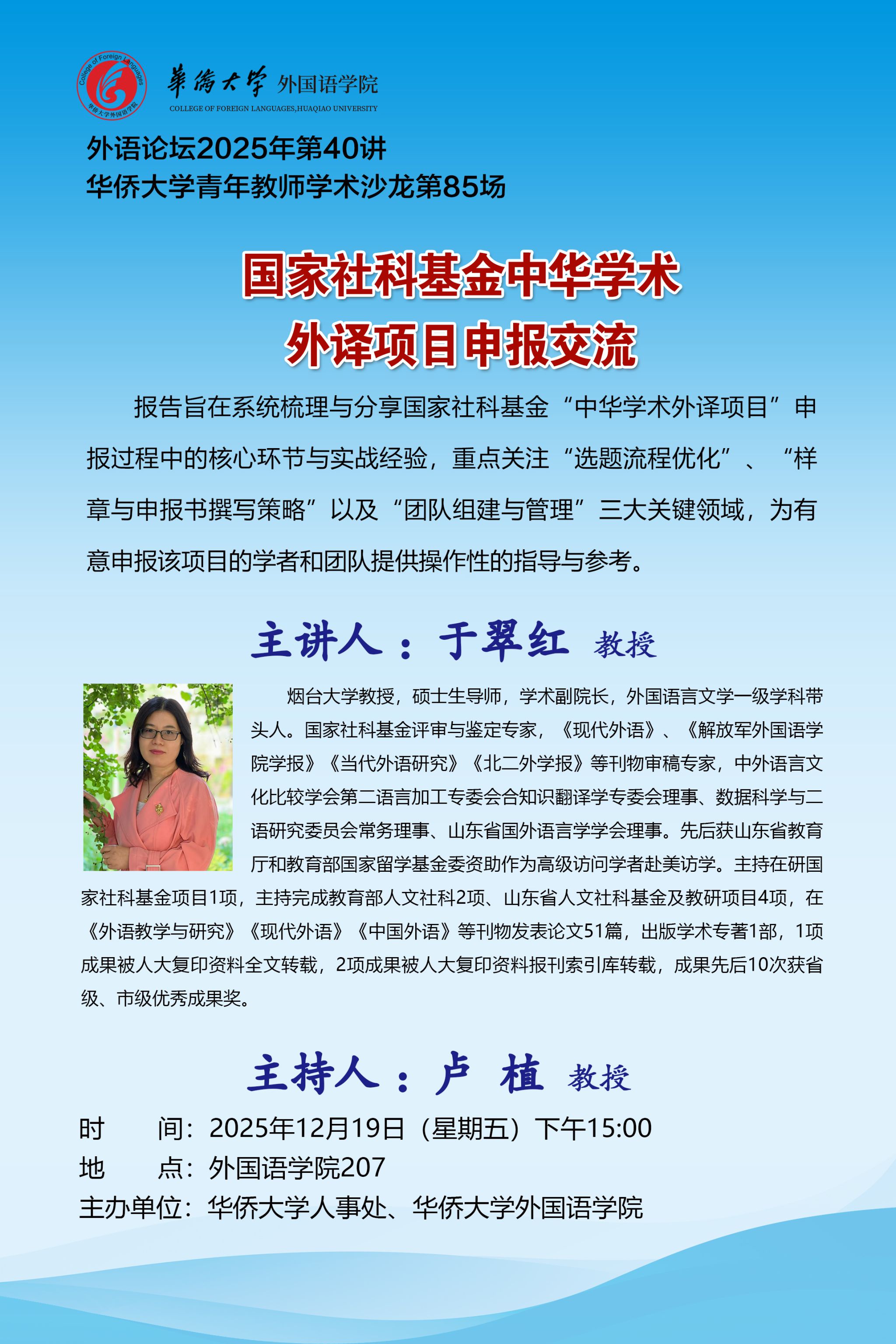 下一条:讲座信息:早期美国的社会性状与小说形态(主讲人:周郁蓓 教授 )
