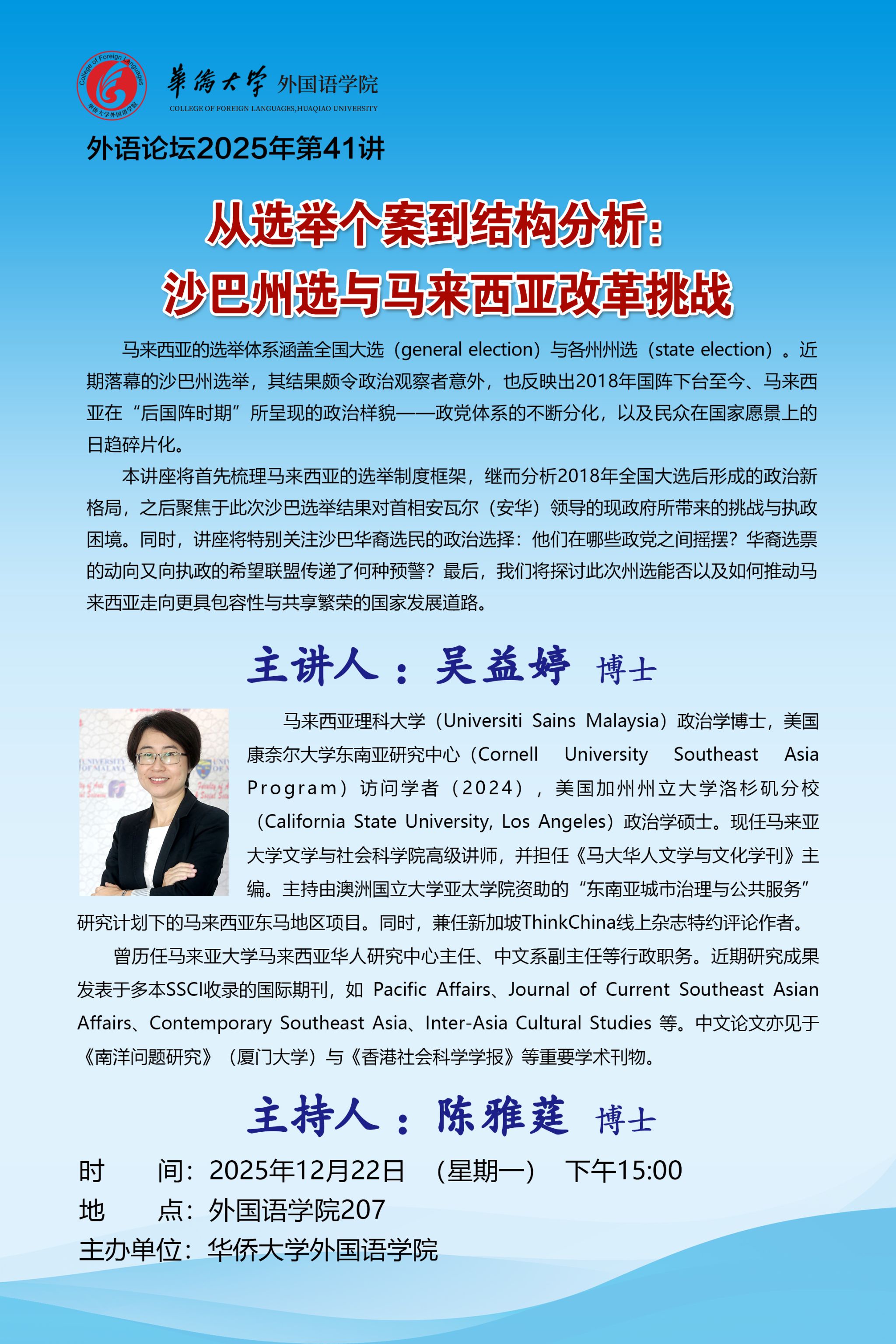 下一条:讲座信息:国家社科基金中华学术外译项目申报交流(主讲人:于翠红 教授 )