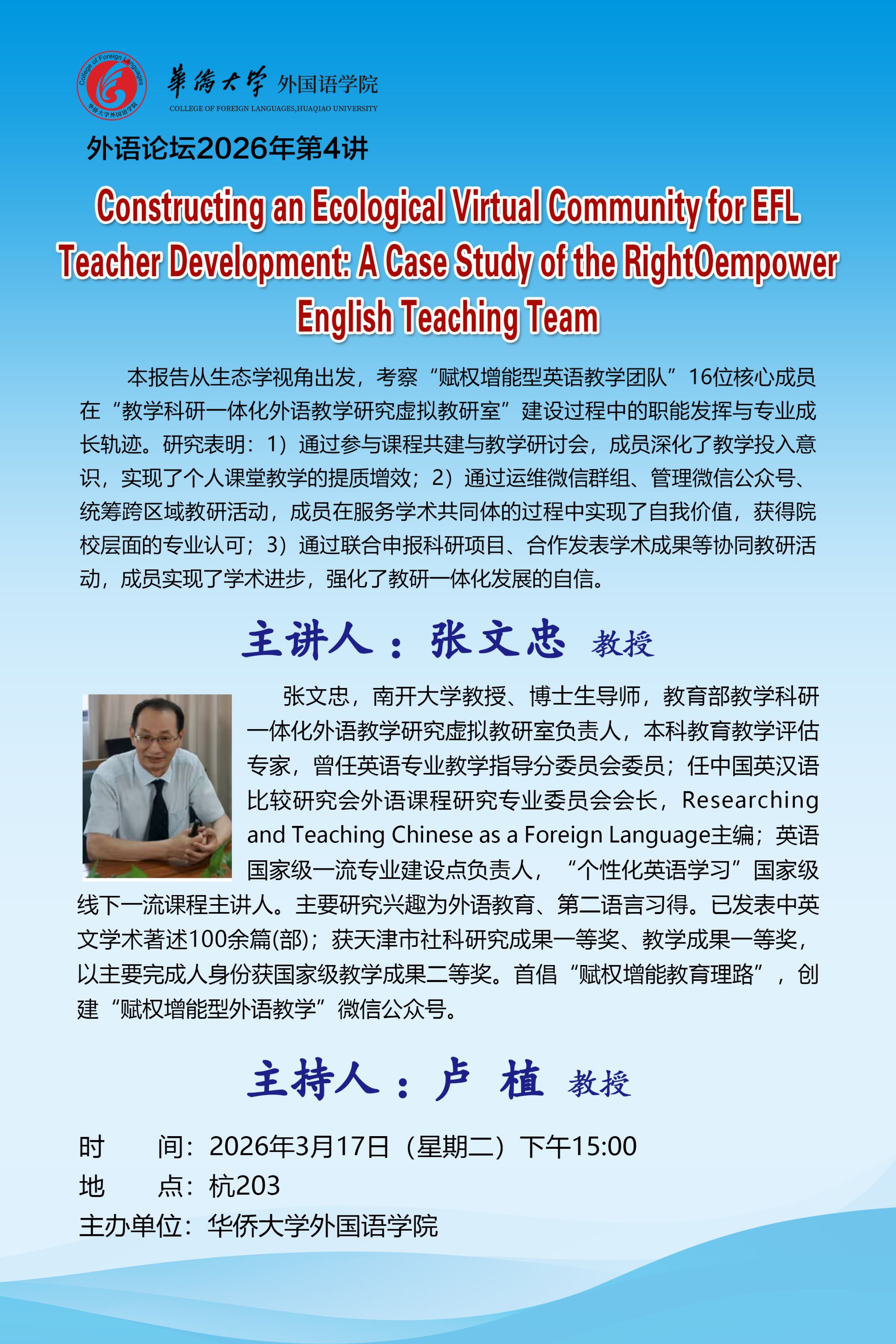 下一条:讲座信息:语用翻译学以及翻译研究发表的问题 (Pragmatranslatology Alongside Translation Study and Publication Problems)(主讲人:侯国金 教授)