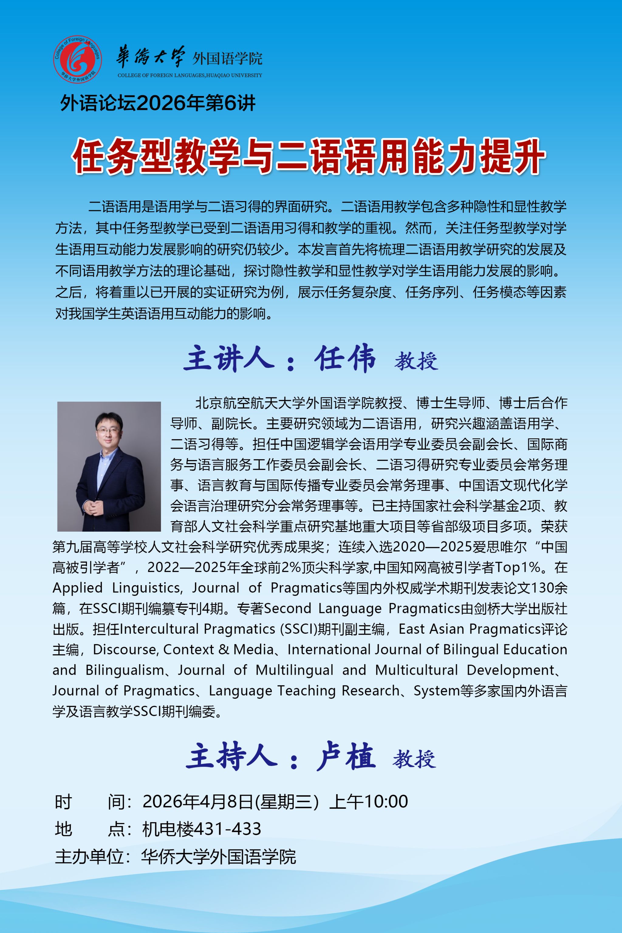 下一条:讲座信息:谈科研课题的研究方法(主讲人:邓云华 教授 )