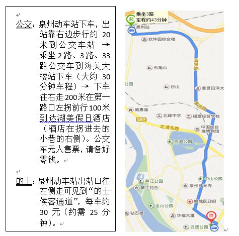 建议:乘坐汽车到泉州市区下车可直接乘出租车到湖美假日酒店(约10元),如果乘公交车需要备好零钱。