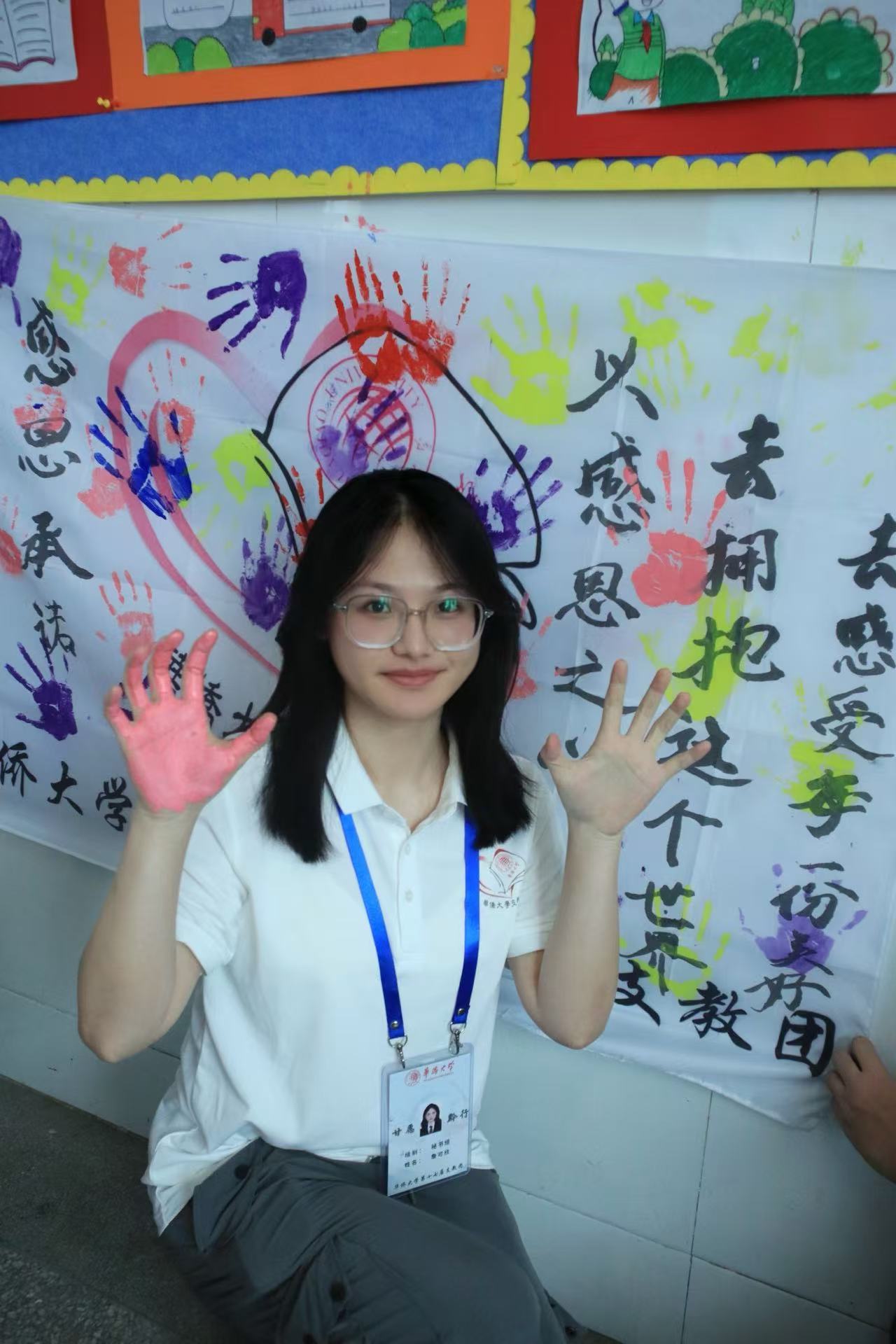 詹可欣深信“知行合一”的力量,将专业所学融入社会实践,累计志愿时长达686小时。她积极投身支教事业,2024年暑期赴甘肃积石山癿藏小学支教,承担主要课程教学,获评“甘肃省积石山县暑期优秀志愿者”。作为“内地高校港生回港就业分析及公务员意愿调查实践团”队长,她带领团队完成深度调研,成果获“校级优秀调研报告”,个人获评“暑期社会实践先进个人”。在“桐鹭桥”暑期实习中,她于泉州市丰泽区委组织部历练,展现出优秀的组织协调能力。她还积极参与国际赛事志愿服务,在2025WBGP世界芭蕾舞大奖赛中提供多语言服务。从基层支教到国际舞台,她的实践足迹印证了外语人服务社会的多元路径。